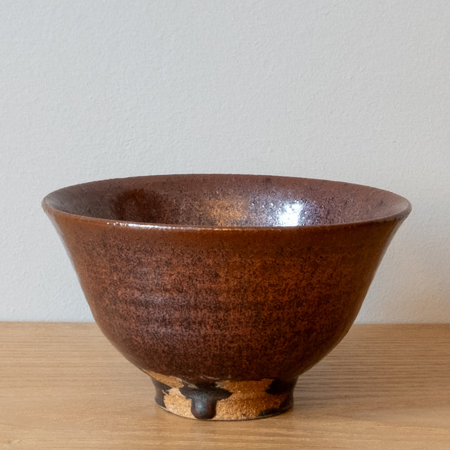 This lovely tea bowl has Maruta san's signature rainbow shunkei glaze, depending on the light you can see purple, orange, red and brown in the glaze.
