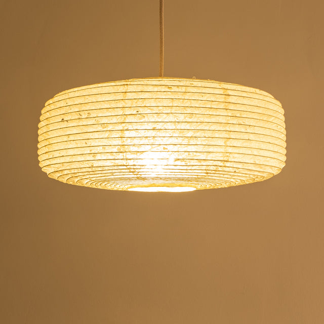 Daifuku is a type of filled mochi or rice cake which has a similar shape to this shade and inspired its name. But the shape gives a nice compact shade at only 20cm high with an interesting and unusual shape. The Hemp Asaraku paper has long fibers with random holes in the paper made by water drops dropping on the half-made paper. Hemp is quite rare as a paper and it will lose it's bright whiteness and soften a tiny bit as it ages.
