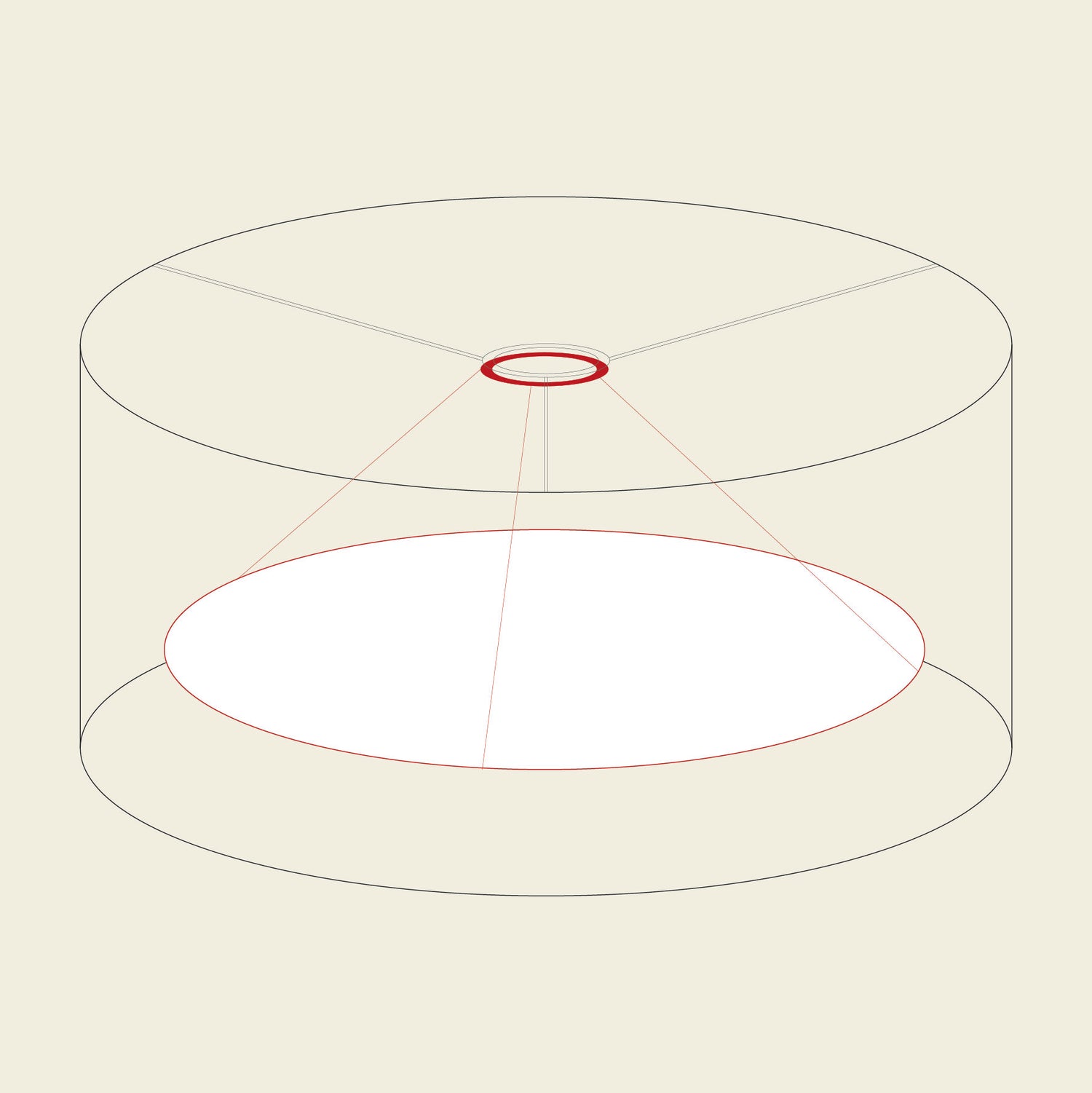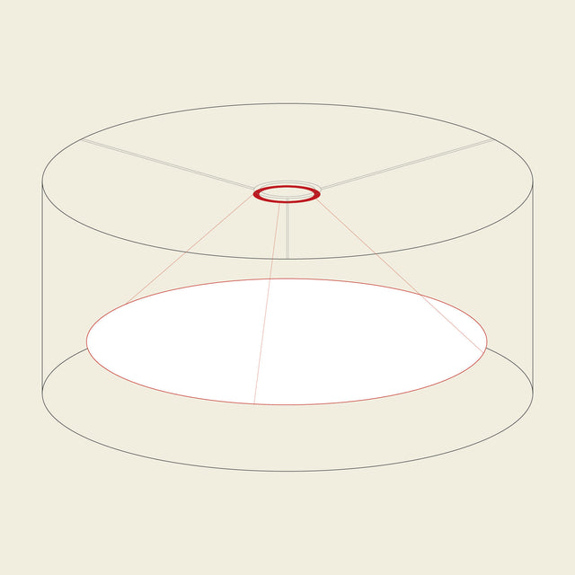 These diffusers hang from the same lampholder (or lampsocket) as your shade and sit about 25mm above the bottom rim of the shade, so are suspended higher up in the shade. They are 6 inches (9cm) smaller in diameter than the shade itself so that plenty of light passes around the diffuser while still blocking the direct light from the bulb.