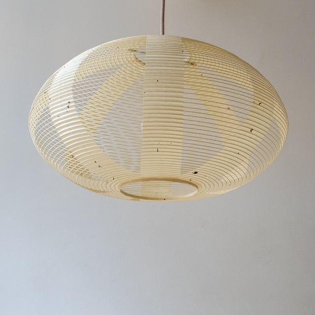 Similar to our 53cm Enban shades but with a much smaller lower aperture, these 46cm diameter shades look great in a cluster with the daifuku or maru shades. The kozo paper is a traditional mulberry washi paper with flecks of bark. This shade is made in the skashi style, where the shade isn't completely covered, increasing brightness and also showing off the structure of the shade.